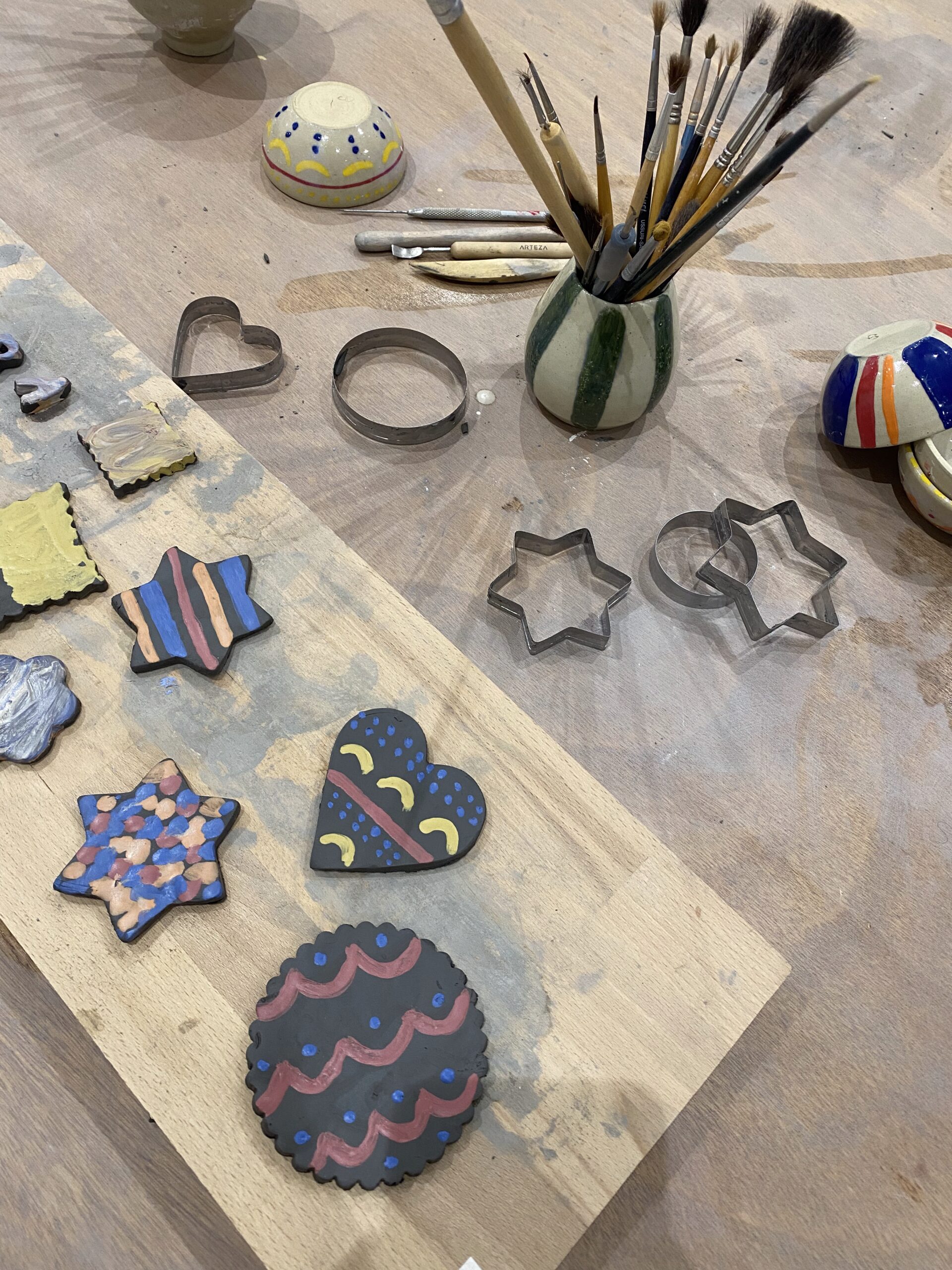 À la fin du stage, les plus belles pièces de chaque enfant seront émaillées et cuites, puis prêtes à être récupérées quelques semaines plus tard à l’atelier.